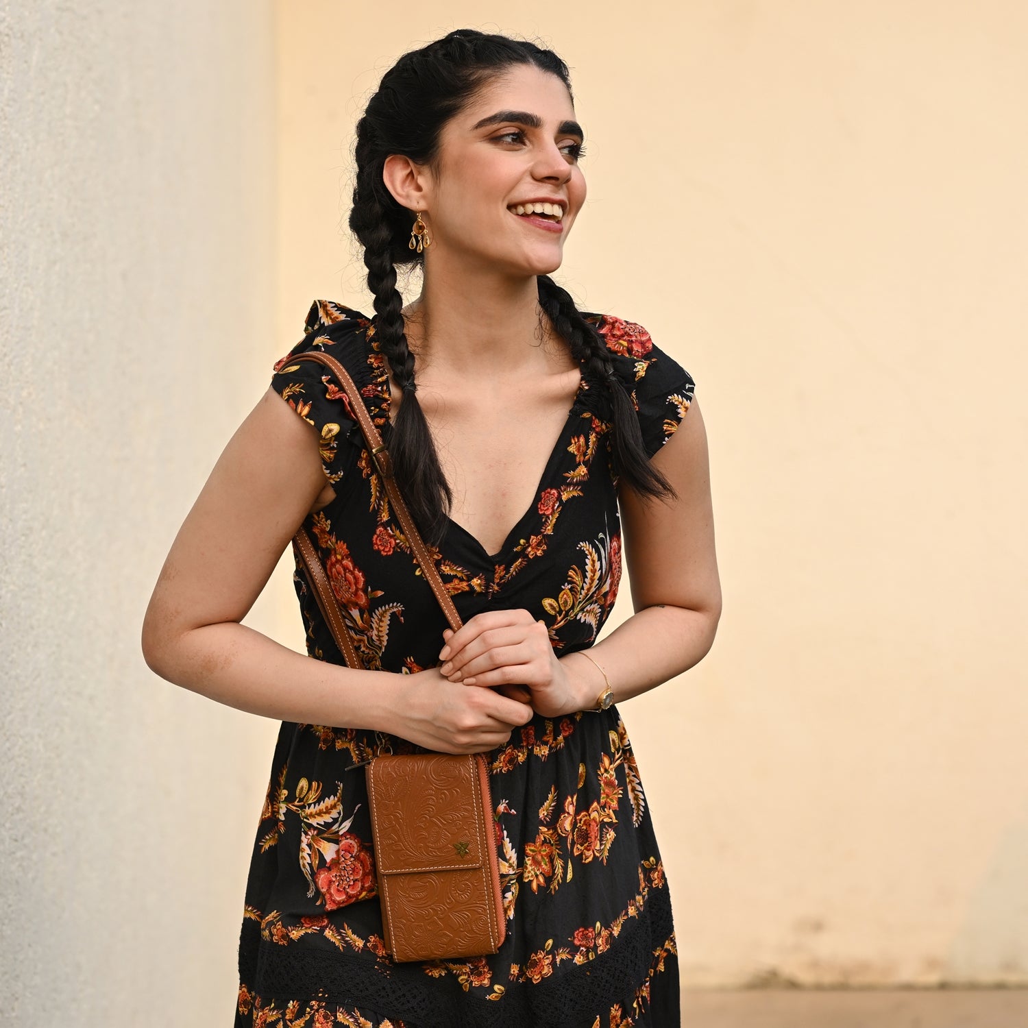 Floral Embossed Genuine leather exterior and trim.