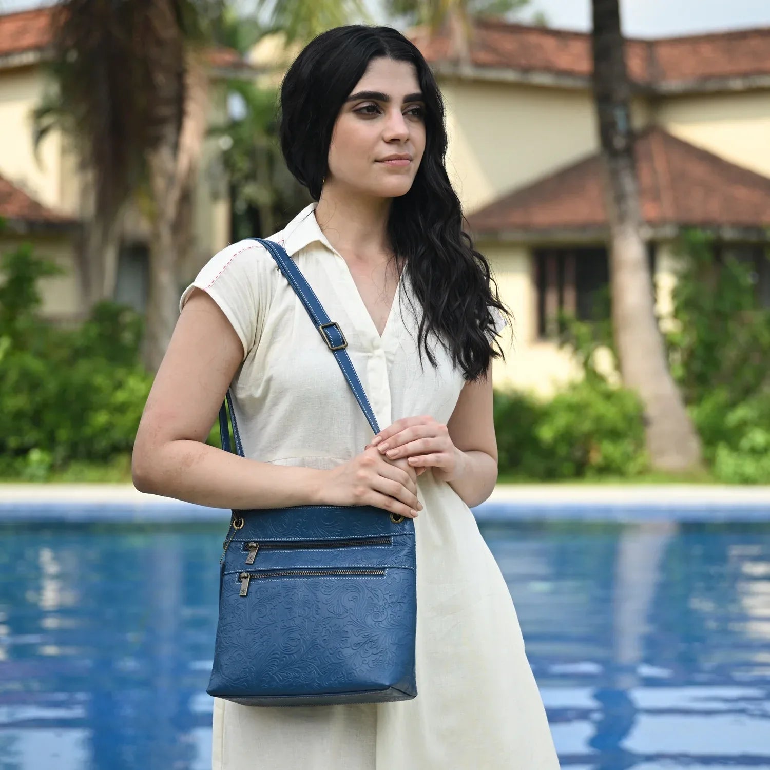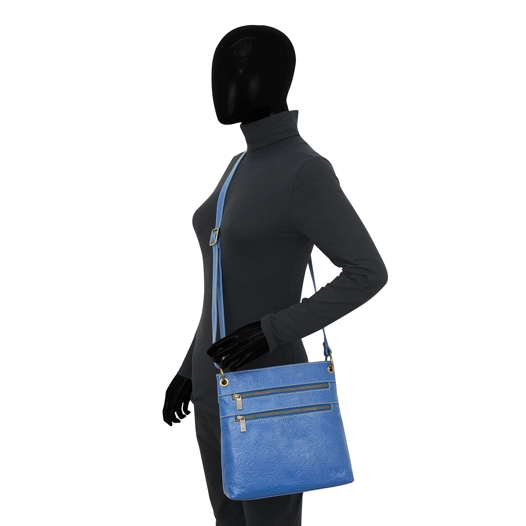 Floral Embossed Genuine leather exterior and trim.
